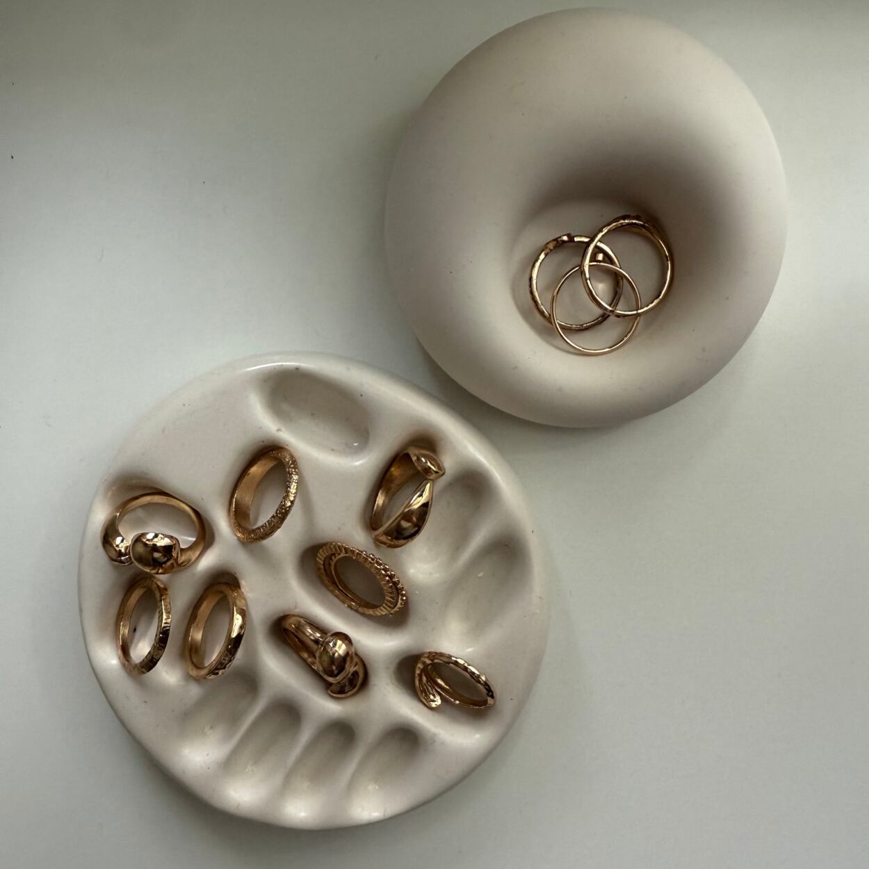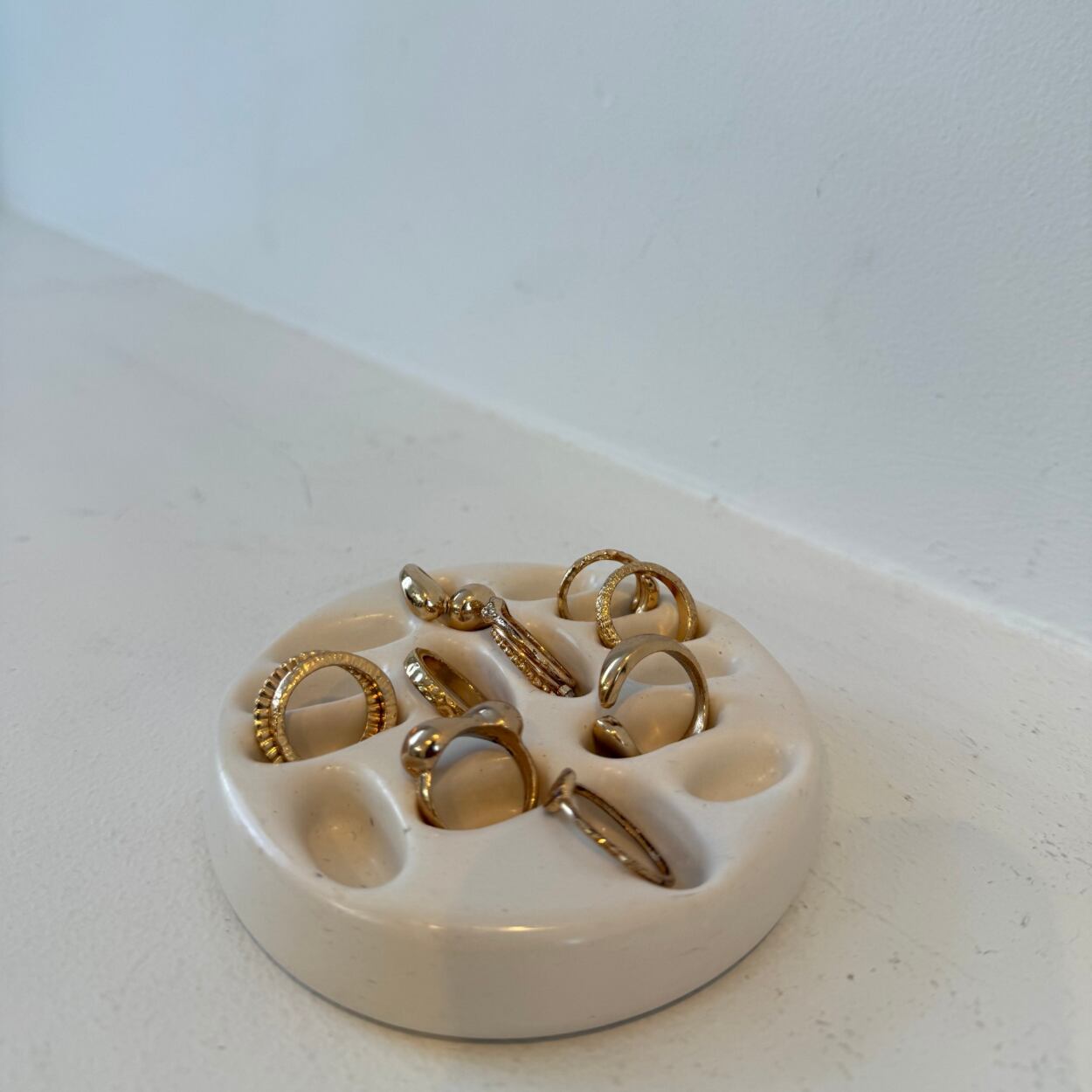 滑らかな曲線と有機的な凹凸が特徴の「Lena Stone Tring folder」は、自然の石や水の流れから着想を得たデザイン。アクセサリーの置き皿として、空間に穏やかなリズムと洗練を添えてくれます。一点一点ハンドメイドで仕上げられた、唯一無二のアートピースです。