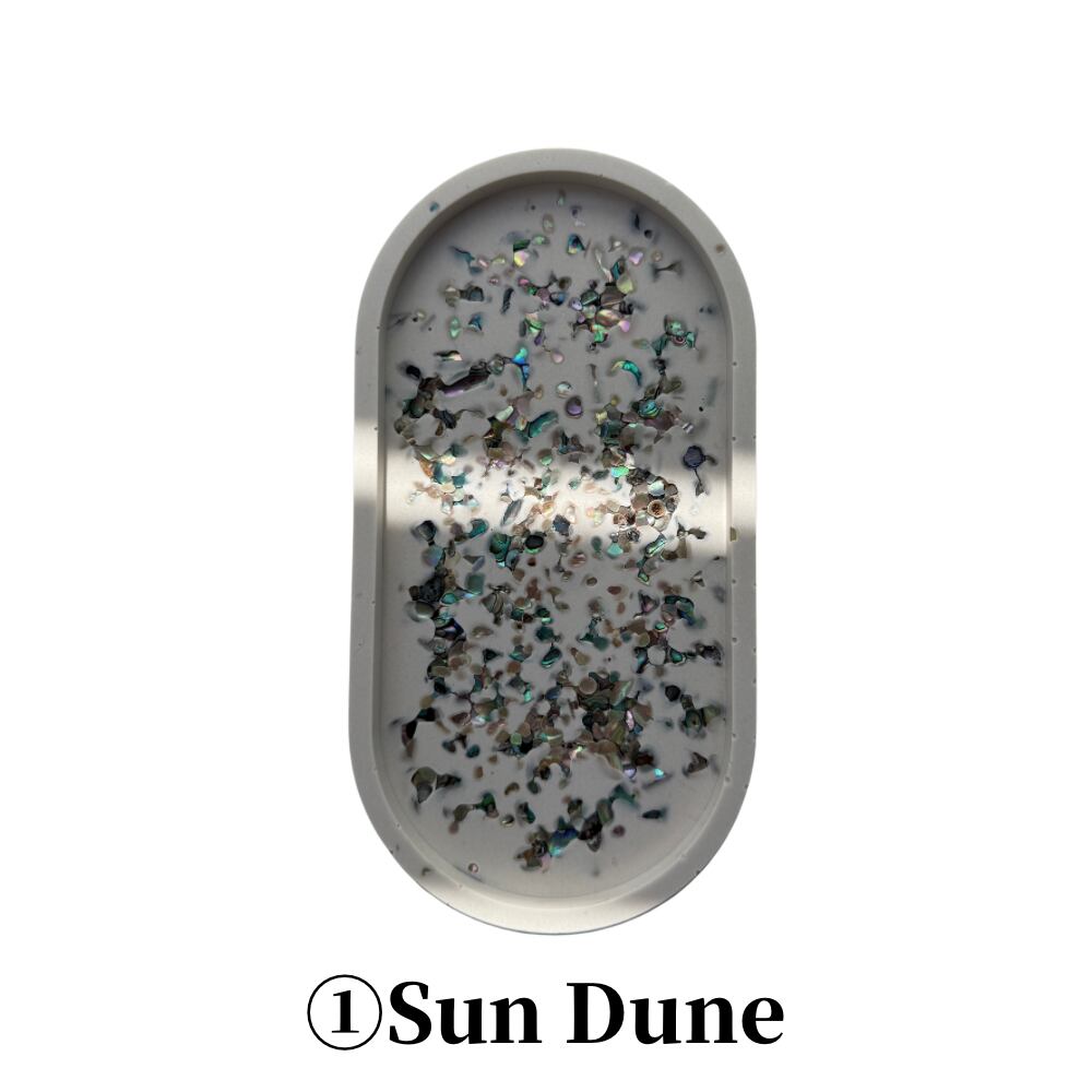 Shelléa(シェレア)は、海辺に舞い上がる波と砂浜のぬくもりからインスピレーションを受けた、夏限定のジェスモナイトトレイ。天然石とシェル片を散りばめたテラゾーデザインが、光に反射して上品なきらめきを放ちます。